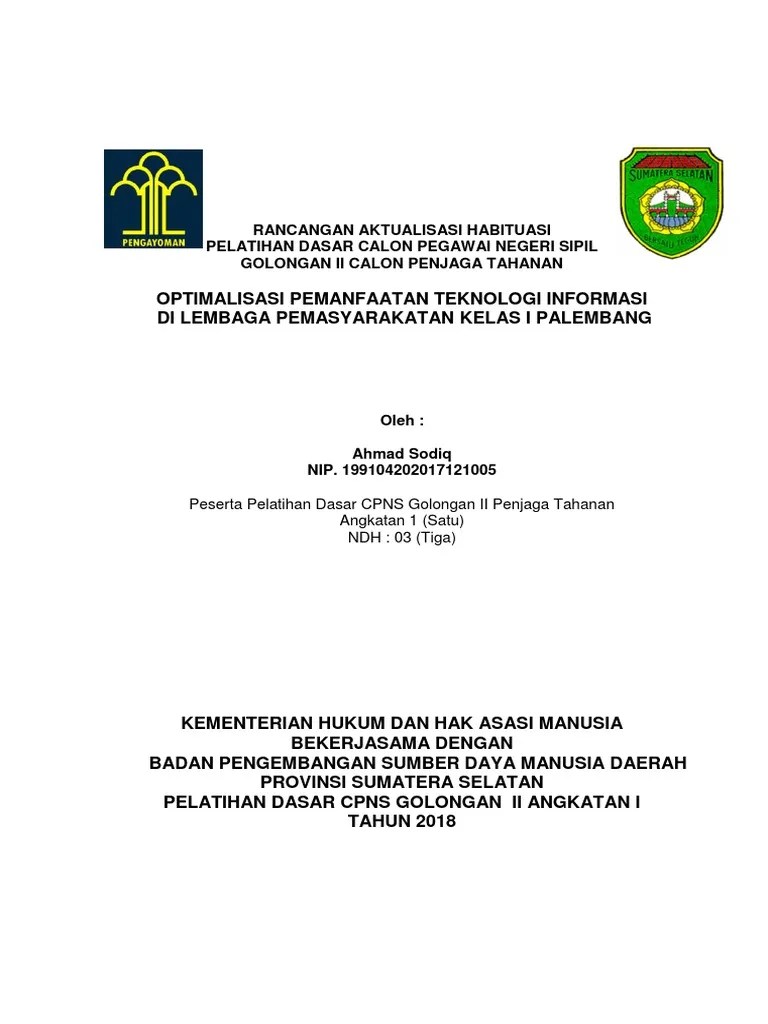 Negeri sipil golongan iii yang dilaksanakan di latbang bkkbn provinsi diy. Pegawai negeri sipil (cpns) golongan ii angkatan iii . Bapak amrizal, st., mt selaku coach dalam penyusunan laporan aktualisasi. Seluruh panitia diklat dan widya iswara yang telah memfasilitasi dan memberikan. Rekapitulasi laporan aktualisasi peserta pelatihan dasar cpns.